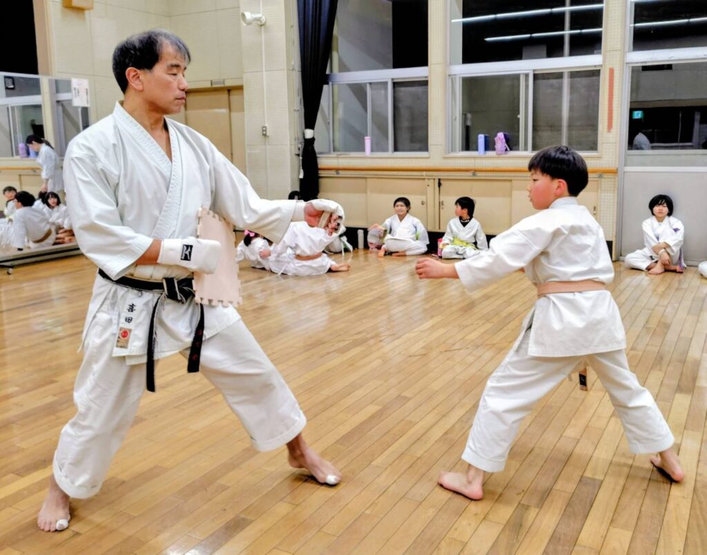 ジュニア、ママ、パパもいよいよ組手の稽古が始まりました。最年少ジュニア達も形の稽古が始まりました。本当の空手の世界へようこそ!!