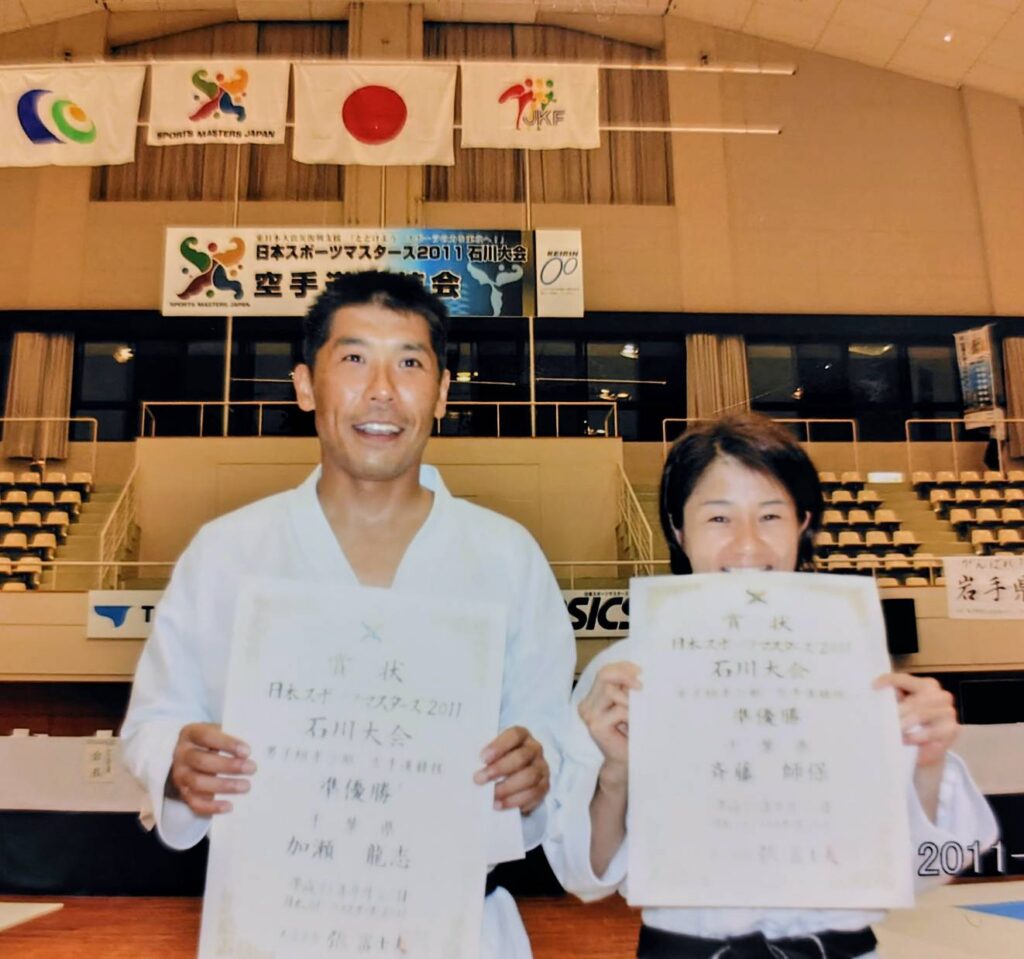 男子組手2部で準優勝となった和道流 船橋の加瀬先生と一緒にパチリ。